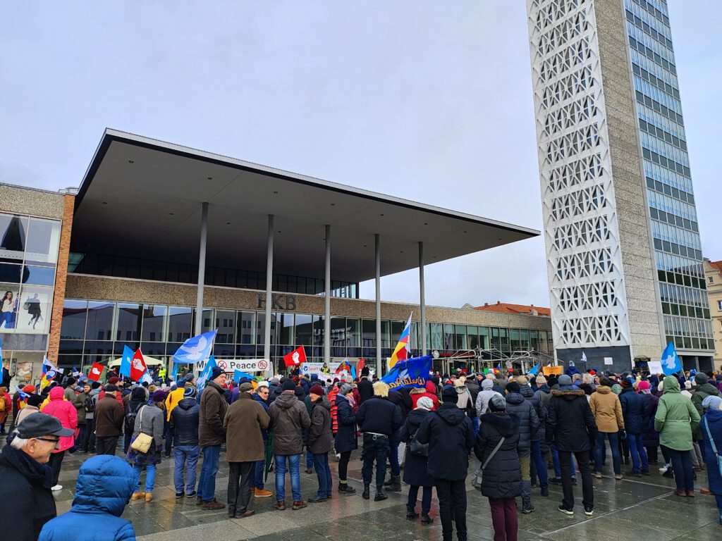 Friedensdemo 25.02.2023, Marktplatz Neubrandenburg „Für Frieden in Europa, schickt Diplomaten statt Waffen“