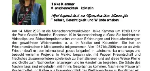 0 “Mut beginnt dort, wo Menschen ihre Stimme für Freiheit, Gerechtigkeit und Würde erheben” – Gespräch mit Heike Kammer 11. März 2026 von admin · Published 11. März 2026