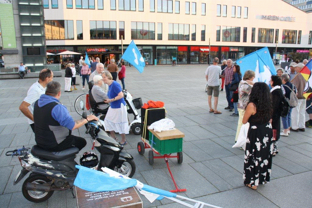 Die Montagsdemo für Frieden, Freiheit, Souveränität stand noch ganz unter dem Eindruck der Antikriegsdemo vom 6. September 2025 mit Christiane Reymann und weiteren Diskussionsrednern auf dem Markt Neubrandenburg. Helga informierte darüber und verwies auf die Website des Friedensbündnisses. Kurz wertete sie das Treffen der Shanghaier Organisation, die Feierlichkeiten zum 80. Jahrestag des Kriegsendes in China und die dazu erfolgte Militärparade. Sie setzte diese wichtige aktuellen Geschehnisse der globalen Politik ins Verhältnis deutscher Kriegspolitik. So will zum Beispiel unser Finanzminister 10 Milliarden Euro für den “Bunkerbau” ausgeben. Bei einem 3. Weltkrieg gibt es keinen Schutz! Der einzige Schutz ist seine Verhinderung und das Geld ist für soziale Belange zu nutzen. Wichtige Termine der nächsten Zeit wurden angekündet, mit der Maßgabe, daran zahlreich teilzunehmen. Der 13. September “Stoppt den Völkermord in Gaza” um 14.00 Uhr am Brandenburger Tor in Berlin und am 3. Oktober “Nie wieder Krieg” um 13.00 Uhr am August-Bebel-Platz. (FriedensBündnisNB)